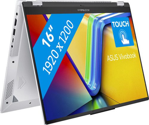 Met de 16 inch ASUS Vivobook S 16 Flip TN3604YA-MC120W gebruik je de laptop ook als tablet, omdat je het touchscreen 360 graden omklapt. Zo swipe je gemakkelijk door verschillende lichte programma’s en gebruik je jouw vinger als penseel bij fotobewerking. Hier zijn de 7000 serie AMD Ryzen 5 processor en het 16 gigabyte DDR4 werkgeheugen krachtig genoeg voor. Werk bijvoorbeeld in Word en Excel, terwijl je muziek luistert via Spotify. Daarbij klinkt de muziek helderder en zuiverder dan bij standaard laptop speakers door de Harman Kardon speakers. Deze laptop heeft een stevige aluminium behuizing en een militaire test doorstaan, je maakt je dus geen zorgen als je wat over je toetsenbord morst of je laptop stoot. Werk je in de avond nog even door? Op het verlichte toetsenbord maak je in het donker minder snel fouten tijdens het typen.