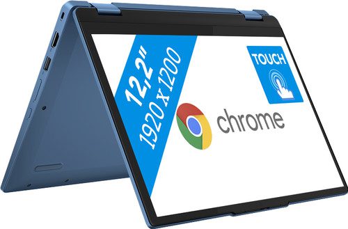 | Besturingssysteem: Google Chrome OS Snelheidsklasse: Processor: Intel N Processor kernen: Quad core (4) Intern werkgeheugen: 8 GB Opslagcapaciteit: 128 GB Type opslag: eMMC | Beeldscherm diagonaal: 12,2 inch Verversingssnelheid: 60 Hz Beeldscherm kwaliteit: Reflectie scherm: Glanzend Kleur: Blauw Gewicht: 1,25 kg Bouwkwaliteit: |
