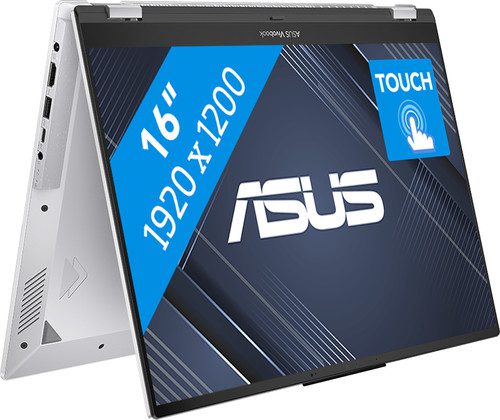 Met de 16 inch ASUS Vivobook Flip TN3604YA-MC086W gebruik je de laptop ook als tablet, omdat je het touchscreen 360 graden omklapt. Zo swipe je gemakkelijk door verschillende lichte programma’s en gebruik je jouw vinger als penseel bij fotobewerking. Hier zijn de 7000 serie AMD Ryzen 7 processor en het 16 gigabyte DDR4 werkgeheugen krachtig genoeg voor. Werk bijvoorbeeld in Word en Excel, terwijl je muziek luistert via Spotify. Daarbij klinkt de muziek helderder en zuiverder dan bij standaard laptop speakers door de Harman Kardon speakers. Je maakt je geen zorgen over te weinig opslagcapaciteit. Je hebt namelijk veel opslagruimte voor al je video’s en andere bestanden met de 1 terabyte M.2 SSD. Deze laptop heeft een stevige aluminium behuizing en een militaire test doorstaan, je maakt je dus geen zorgen als je wat over je toetsenbord morst of je laptop stoot. Werk je in de avond nog even door? Op het verlichte toetsenbord maak je in het donker minder snel fouten tijdens het typen.